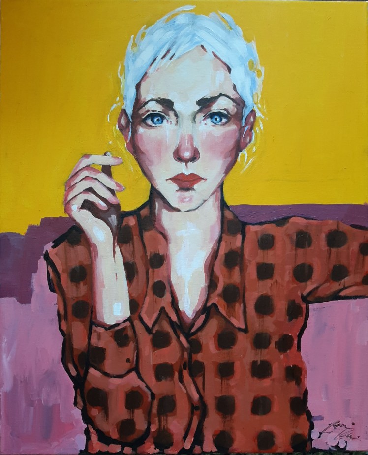 Maalauksissani esiintyy naisfiguureja, yksi yhteinen piirre kaikkien teoksieni hahmoilla onkin hyvin punainen nenä sekä korvat. Alunperin ajatus lähti nimenomaan siitä, kuinka väriskaalaltaan laaja ”ihonväri” käyttäytyy, kun värisaturaatio lisääntyy. Tämä on jäänyt elämään ja muovautunut tietynlaiseksi tavaramerkikseni.